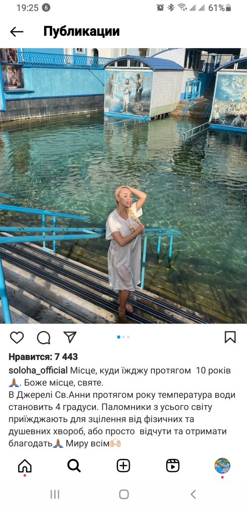 Українська співачка Солоха, яка народила другу дитину, в Instagram поділилася знімками та відео з Джерела Святої Анни та розповіла прихильникам про свою традицію їздити до “святого місця”.